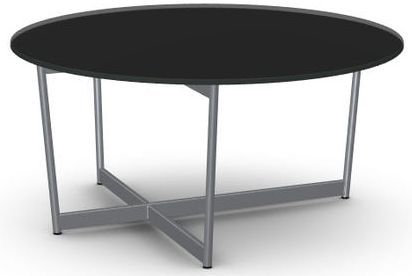 The Amisco Jill Black Glass Coffee Table features a round, black glass tabletop with a flat edge and an x-shaped metal frame. Additional tabletop and colour options are available from your local dealer.Read More