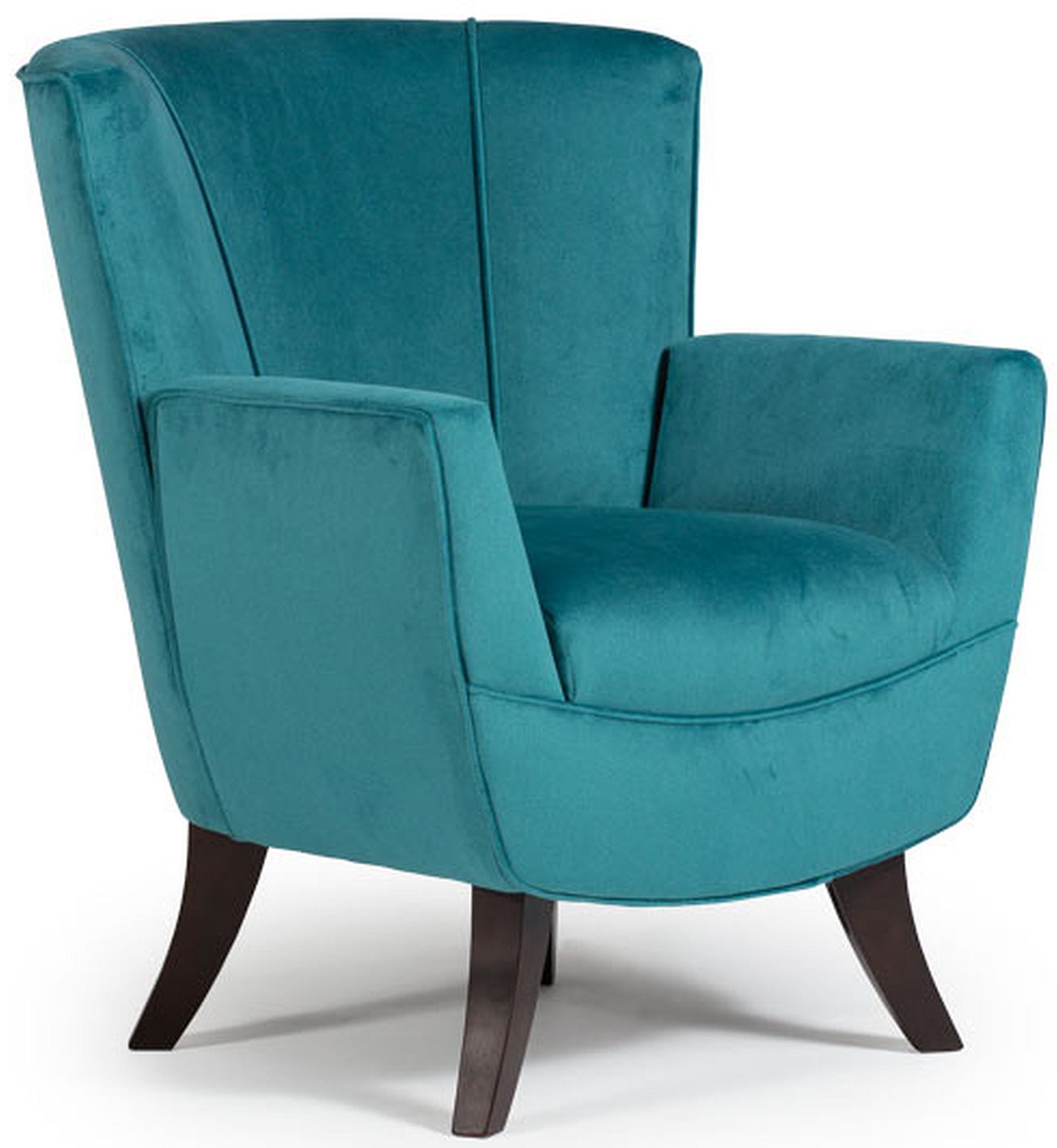 The bowed back of the Bethany club chair offers a perfect spot to sit back and be enveloped by the comfort of this playful chair. The flared legs are finished with your choice of Espresso, Riverloom or Driftwood, keeping in tune with the flirtatiousness of this chair. Choose from over 700 fabric options to make the Bethany a chair that is all your own. As an accent, it pairs nicely with many styles of furniture. The soft curves and styled pleats will leave you head over heels.