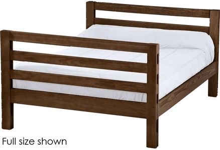 Options include extra-long for big kids and a taller version to allow 8" more headroom under the bed for comfortable seating when you add the upper bed.