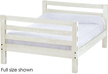 Options include extra-long for big kids and a taller version to allow 8" more headroom under the bed for comfortable seating when you add the upper bed.