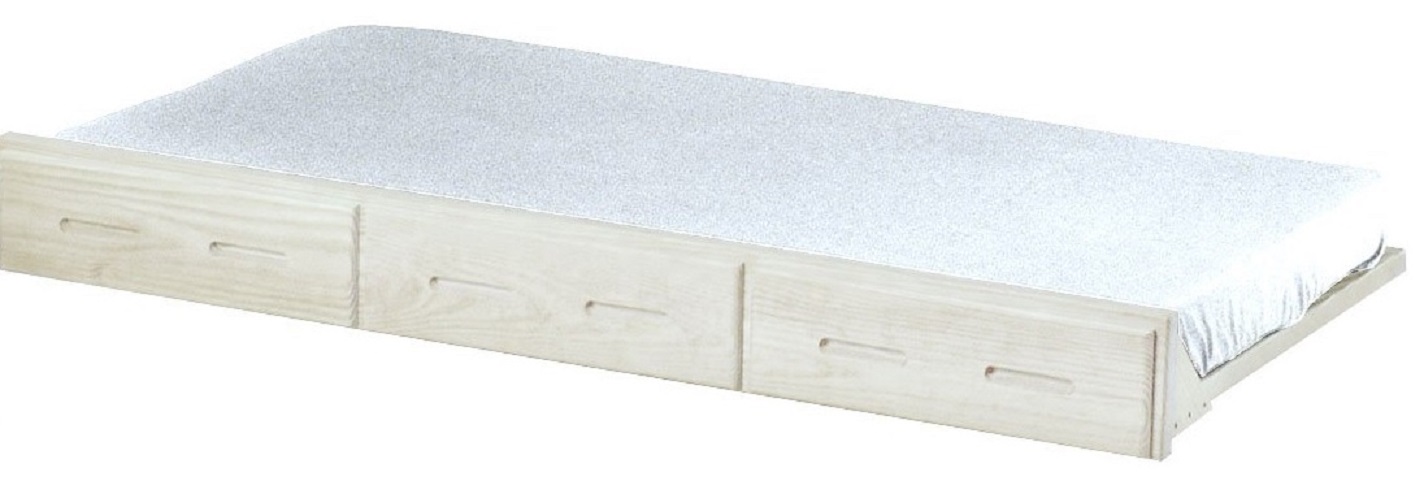 The trundle bed rolls out easily on 6 casters. You can use it under any CD bed as an extra hidden bed. Requires the Trundle Mattress. Regular mattresses will not fit.