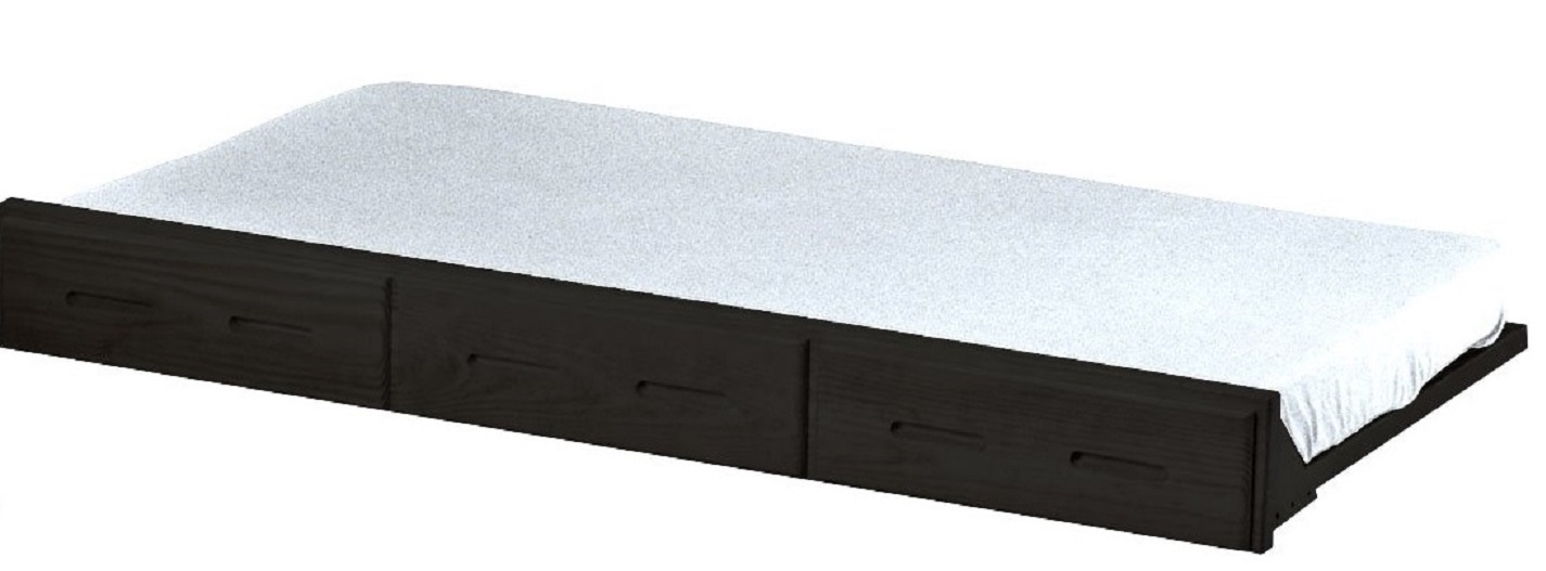 The storage trundle bed rolls out easily on 6 casters. You can use it under any CD bed as an extra hidden bed. Requires the Trundle Mattress. Regular mattresses will not fit.