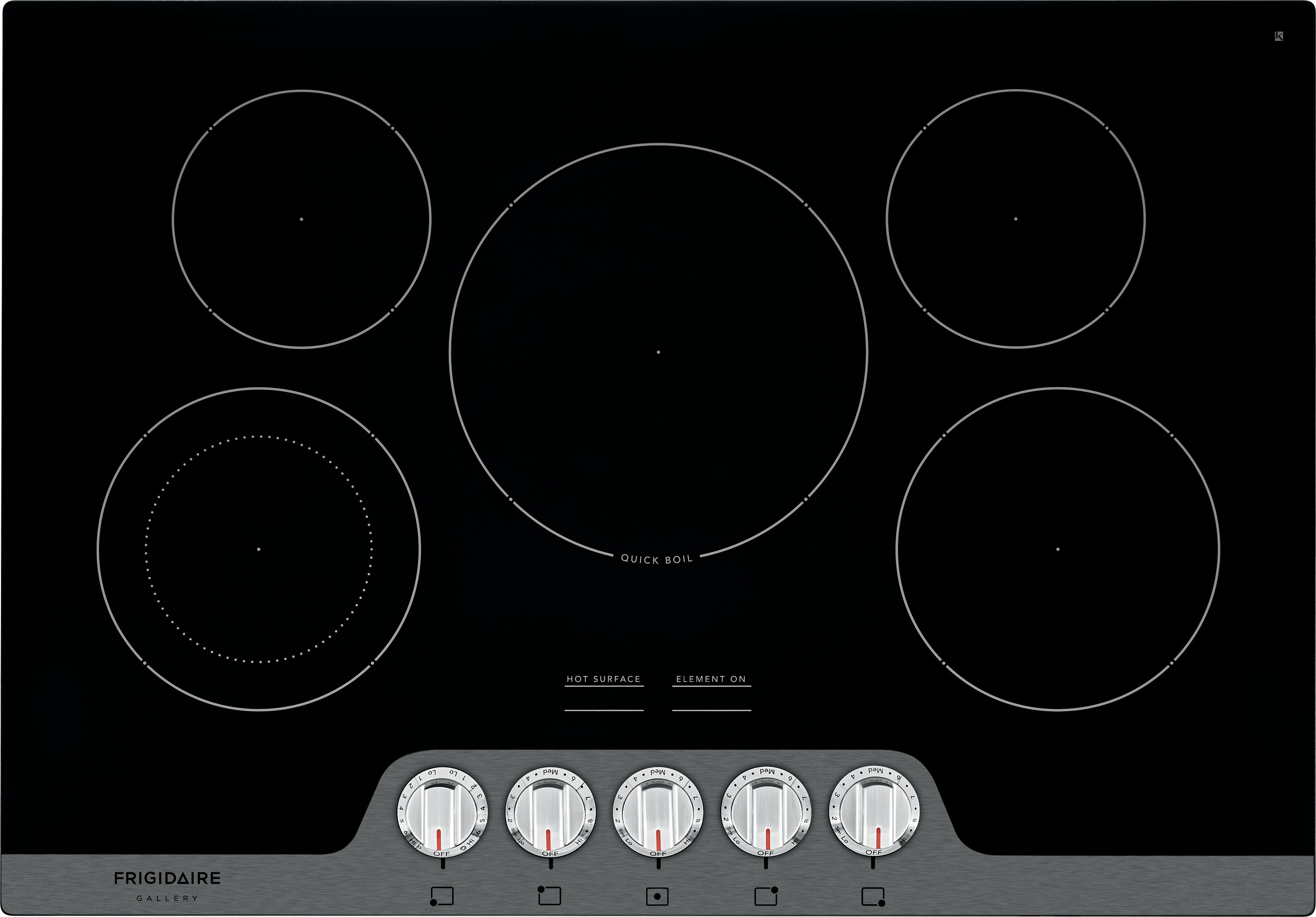 Expand your cooking possibilities with this sleek Electric Cooktop by Frigidaire Gallery. The five-element smooth surface cooktop features two Space Wise elements that adjust in size to fit the diameter of your cookware. A 7 in. burner and two 6 in. burners provide even more space to sate and sear your favourite foods, giving you flexibility when preparing a picture-perfect meal for family or guests. Express-Select control knobs easily go from warm to boil, so you can regulate your heat output with accuracy. Hot surface indicators let you know when the cooking elements are still too hot to touch, keeping you and your family safe. This cooktop fits above most wall ovens to create a seamless appearance.Read More