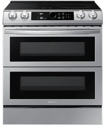 This Samsung 30" fingerprint resistant stainless steel slide in induction range is the must-have for your cooking needs. Cook quickly and precisely using the powerful 4.2kW UltraExpress Boil™ Induction Cooktop. It can rapidly go to a high heat or right down to a simmer. And, for peace of mind, Virtual Flame Technology™ provides intuitive visual control and a Child Lock mode. Save time and cook food more evenly with a True Convection system. A heated fan distributes heat all around the oven and keeps the temperature constant so dishes are cooked quickly and thoroughly.