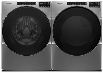 Whirlpool® chrome shadow front load laundry pair with a 5.2 cu. ft. capacity front load washer and 7.4 cu. ft. capacity front load gas dryer.Read More