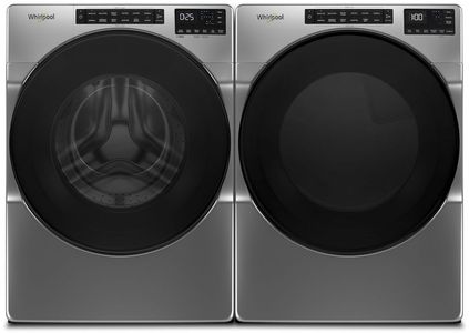 Whirlpool® Chrome Shadow Front Load Laundry Pair with a 5.2 cu. ft. capacity front load washer and a 7.4 cu. ft. capacity front load electric dryer.Read More
