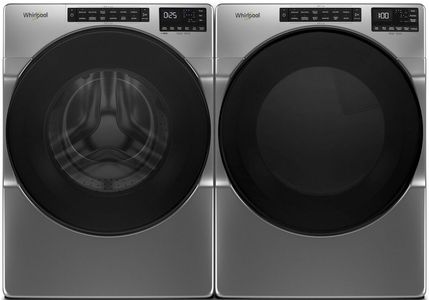 Whirlpool® chrome shadow front load laundry pair with a 5.8 cu. ft. capacity front load washer and 7.4 cu. ft. capacity front load gas dryer.Read More